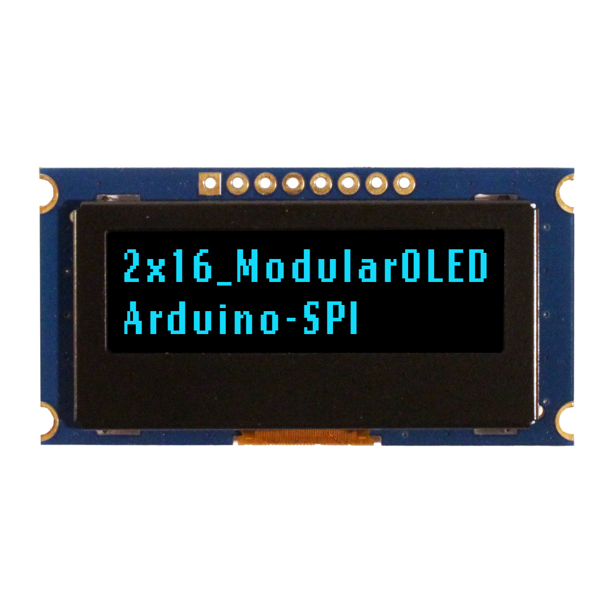 Newhaven 2 x 16 Blue 2 x 16 Modular Character OLED; SPI MPU Interface @ 2.4-5V and SPI Interface with 1 x 8 Connector and US2066 Controller. PN - NHD-0216AW-SB3