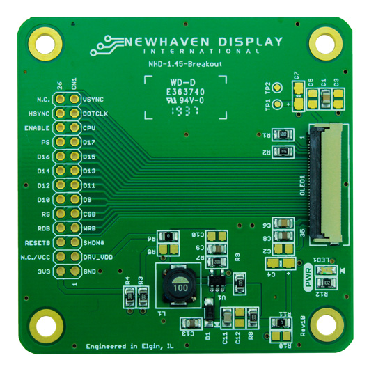 Newhaven Breakout board for 1.45 Inch Color OLED Glass Display Using Serial / Parallel Interface Full Part Number: NHD-1.45-Breakout
