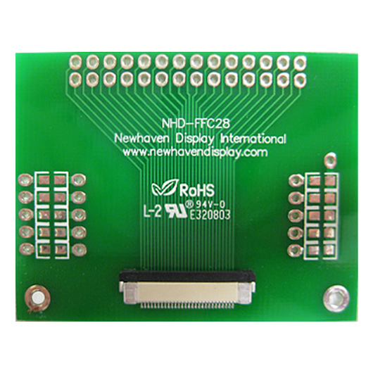 Newhaven 28 pin FFC to thru hole adapter @ and Interface with Connector and Controller. PN - NHD-FFC28
