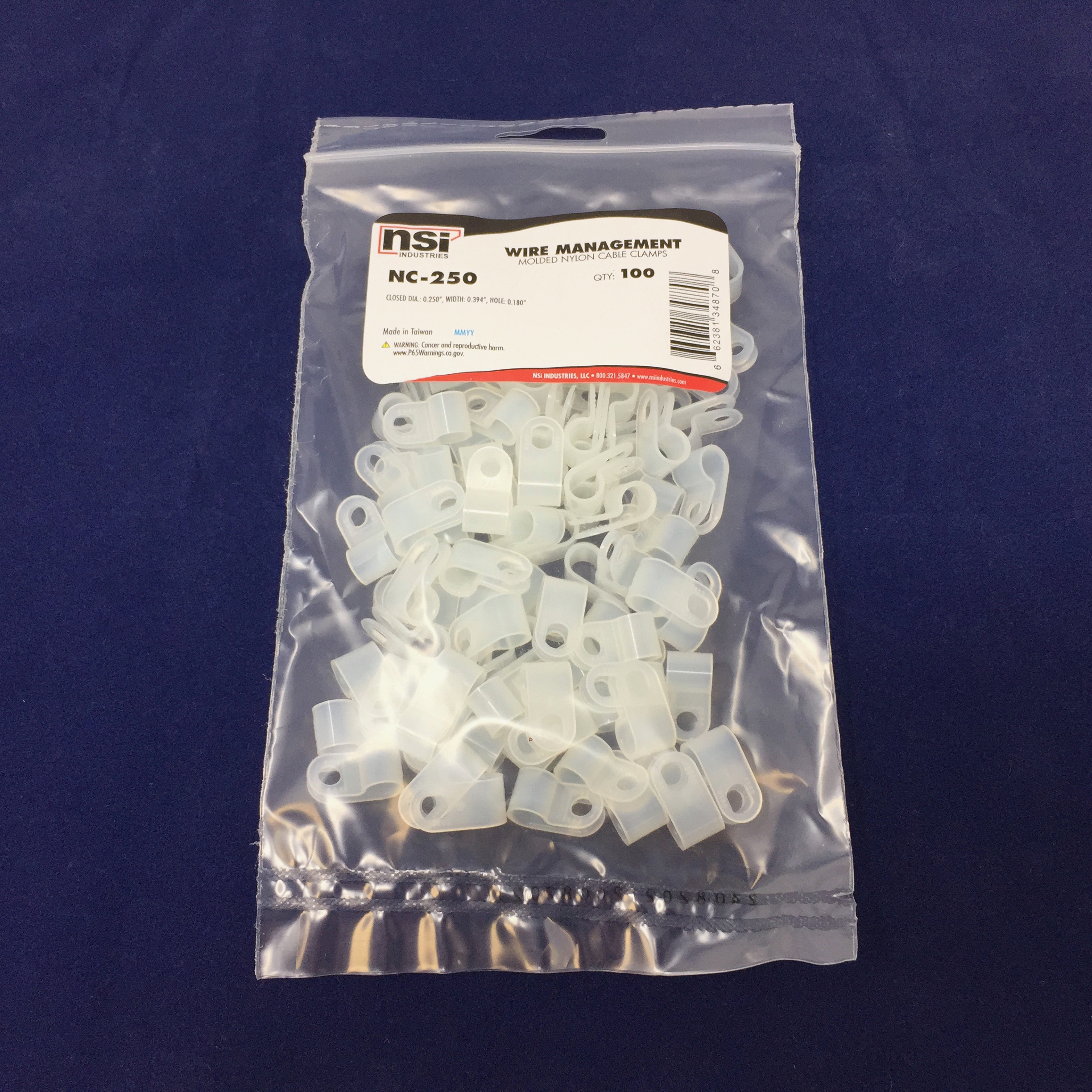 .250 Inch Diameter Nylon Cable Clamps that are .394 Wide x .790 Inches Long - Natural color |100 per pack