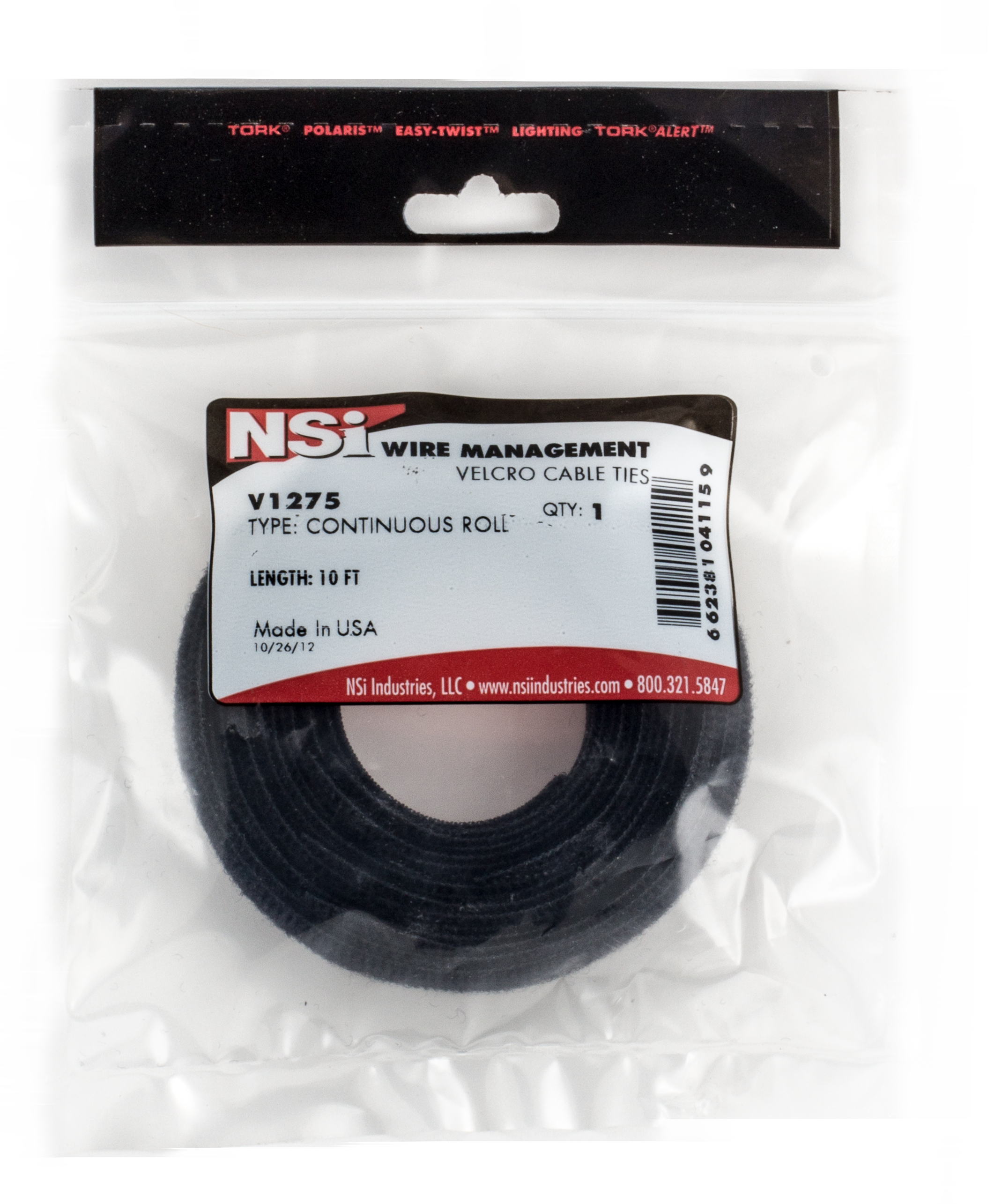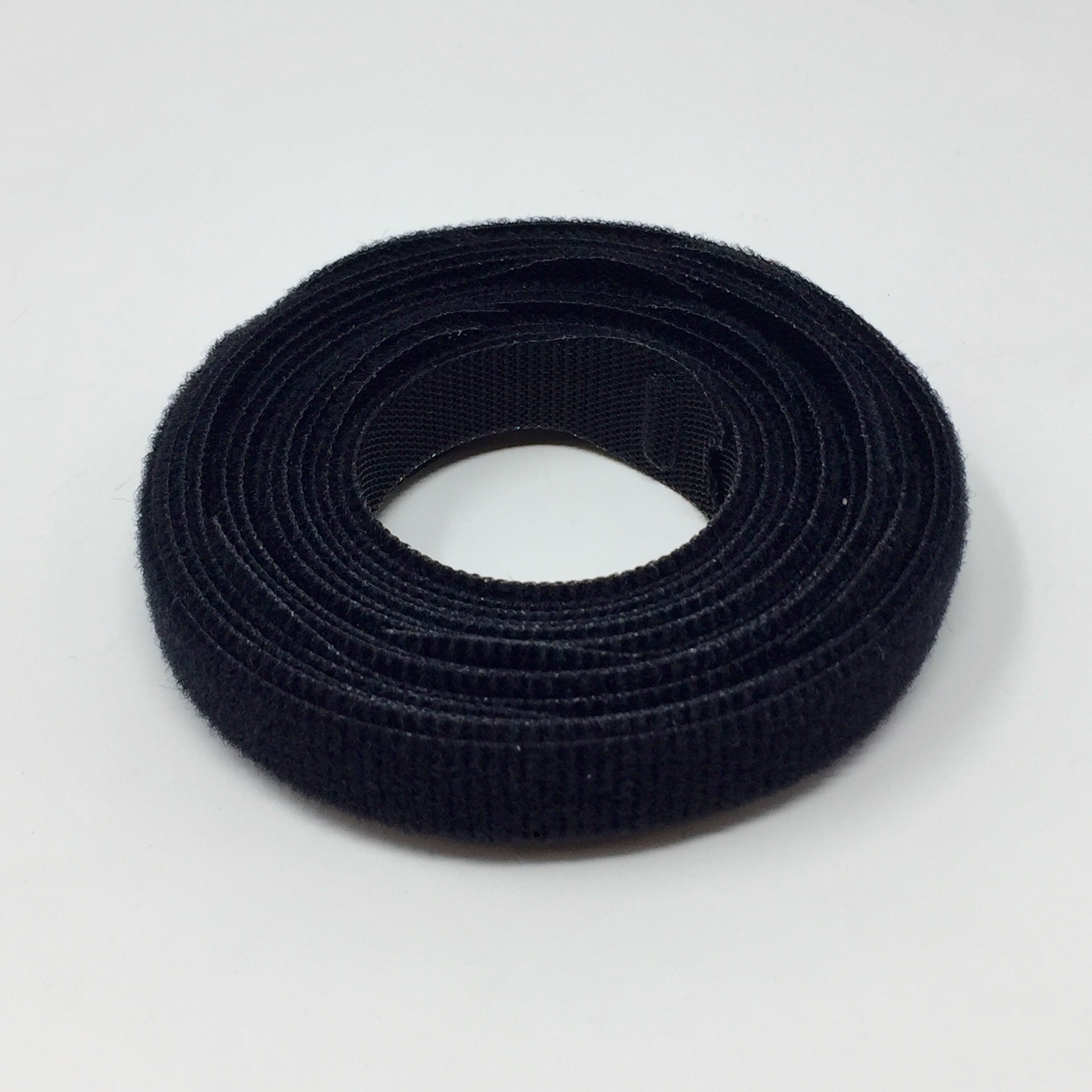 10-ft Black hook and loop fastener Cable Ties - 1 Piece hook and loop fastener Cable Ties offer a unique back-to-back fastening system: a self-gripping; double-sided strap that is easy to use and cost effective. They feature a molded high performance polyethylene hook fastener laminated on to a non-woven polyester loop. The low peel strength allows for easy entry or removal by the user yet the average shear strength is 3.0 psi; which increases substantially with each circular rotation. Will not