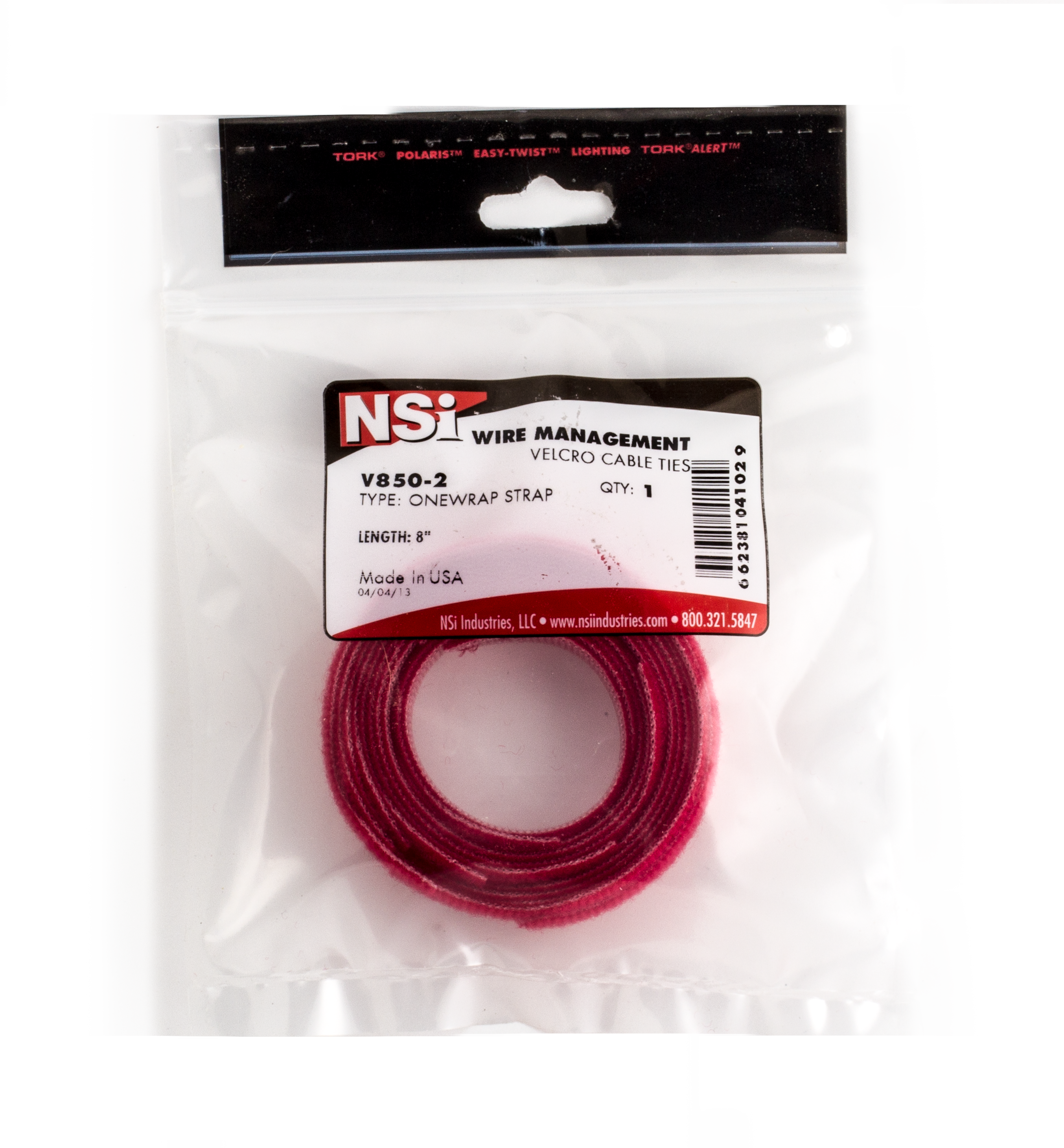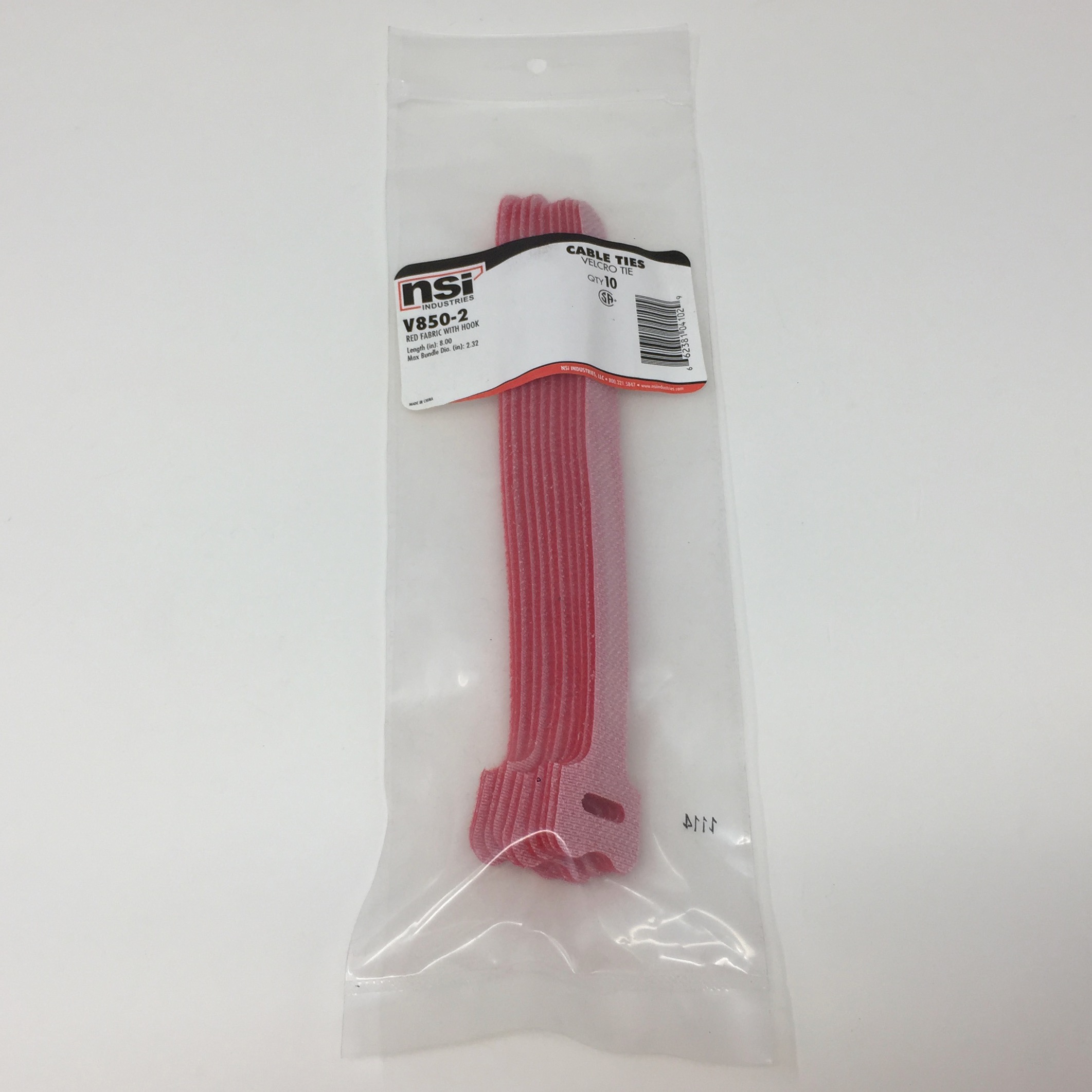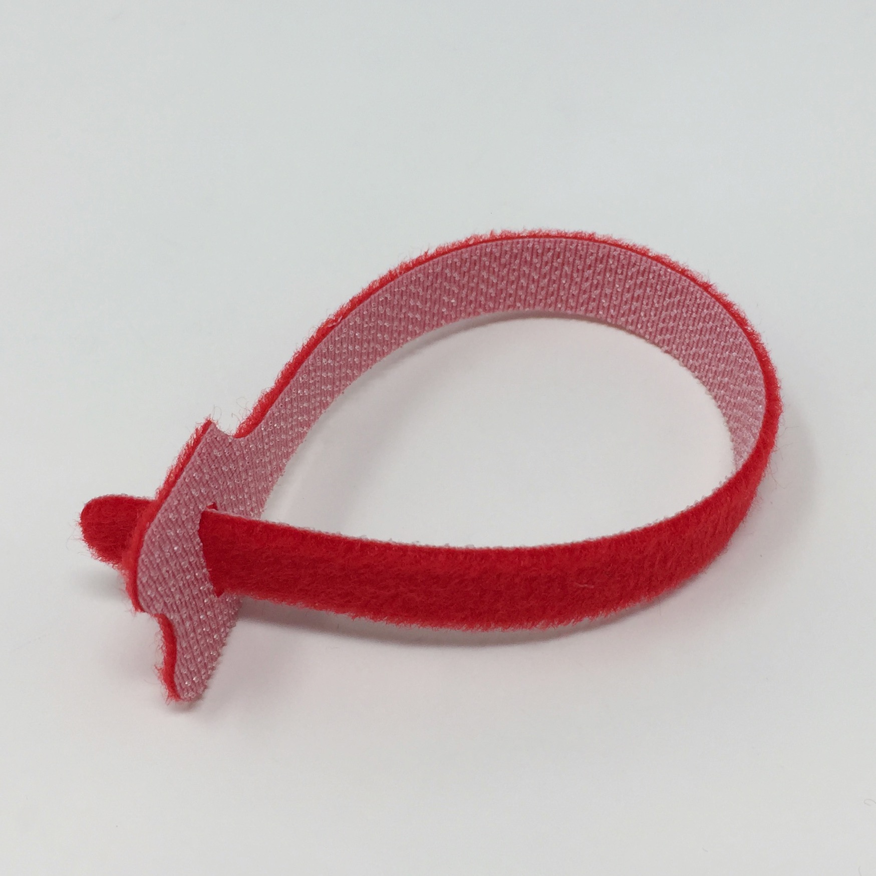 8-in Red hook and loop fastener Cable Ties - 25 Pieces hook and loop fastener Cable Ties offer a unique back-to-back fastening system: a self-gripping; double-sided strap that is easy to use and cost effective. They feature a molded high performance polyethylene hook fastener laminated on to a non-woven polyester loop. The low peel strength allows for easy entry or removal by the user yet the average shear strength is 3.0 psi; which increases substantially with each circular rotation. Will not o