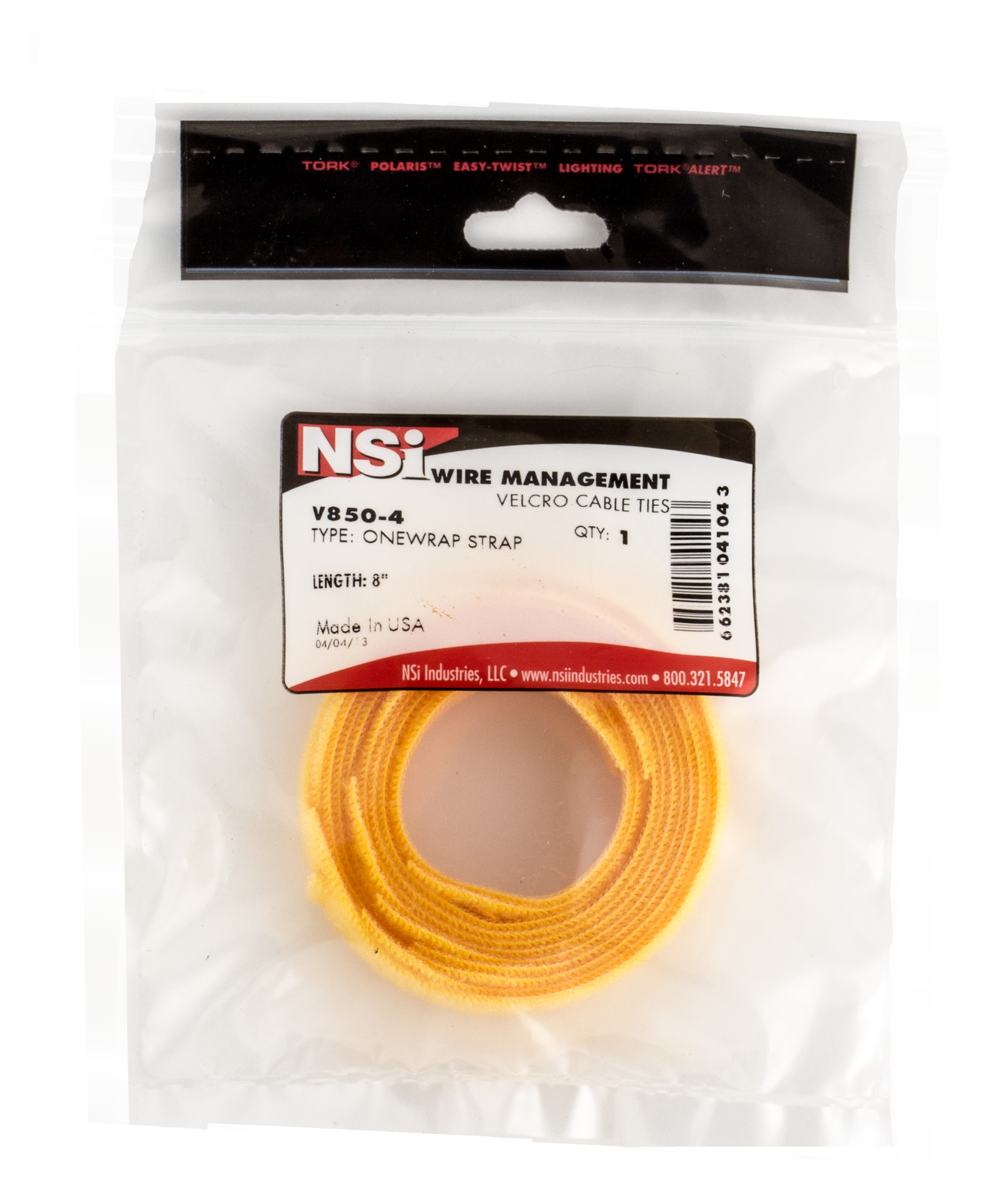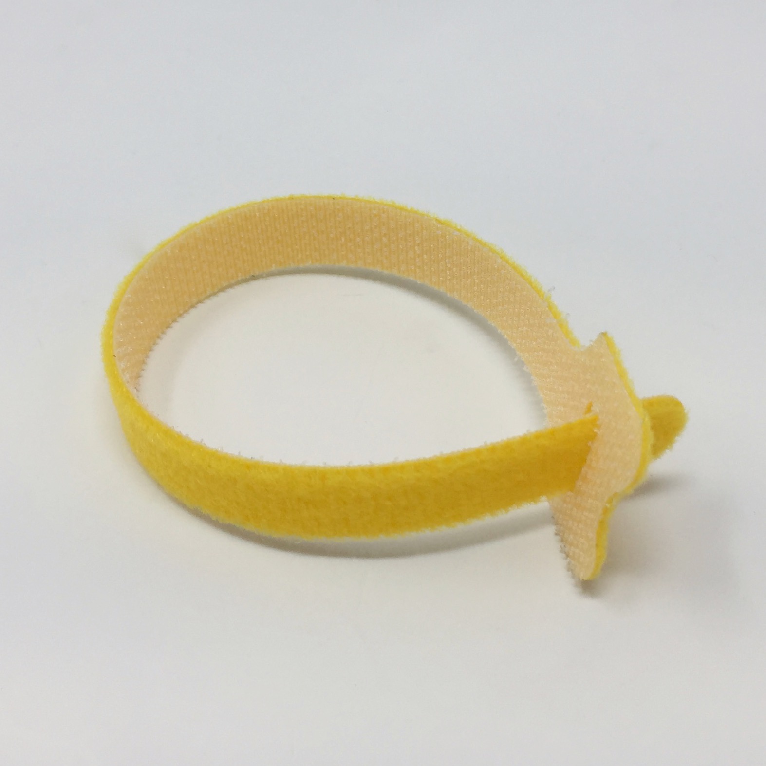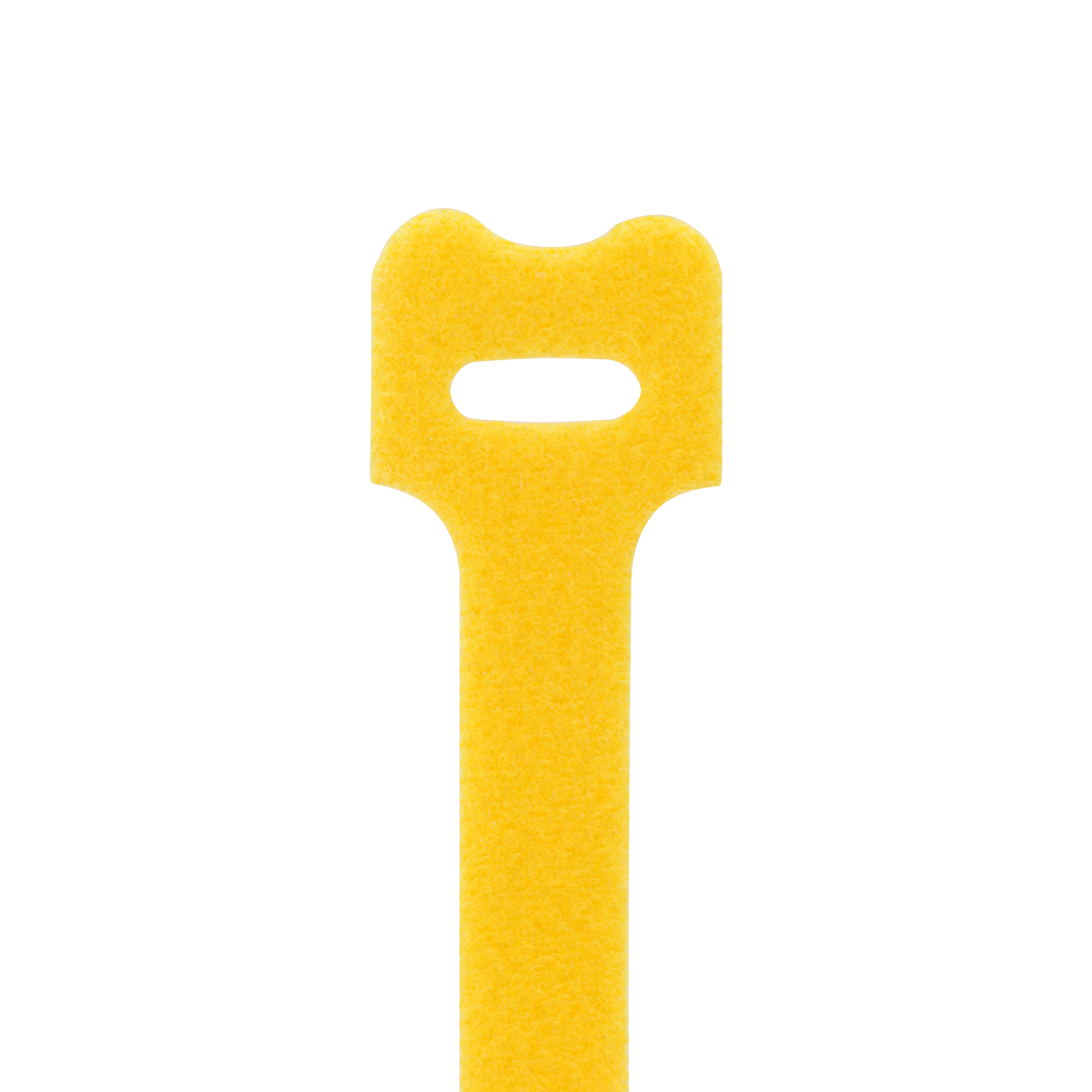 8-in Yellow hook and loop fastener Cable Ties - 25 Pieces hook and loop fastener Cable Ties offer a unique back-to-back fastening system: a self-gripping; double-sided strap that is easy to use and cost effective. They feature a molded high performance polyethylene hook fastener laminated on to a non-woven polyester loop. The low peel strength allows for easy entry or removal by the user yet the average shear strength is 3.0 psi; which increases substantially with each circular rotation. Will no