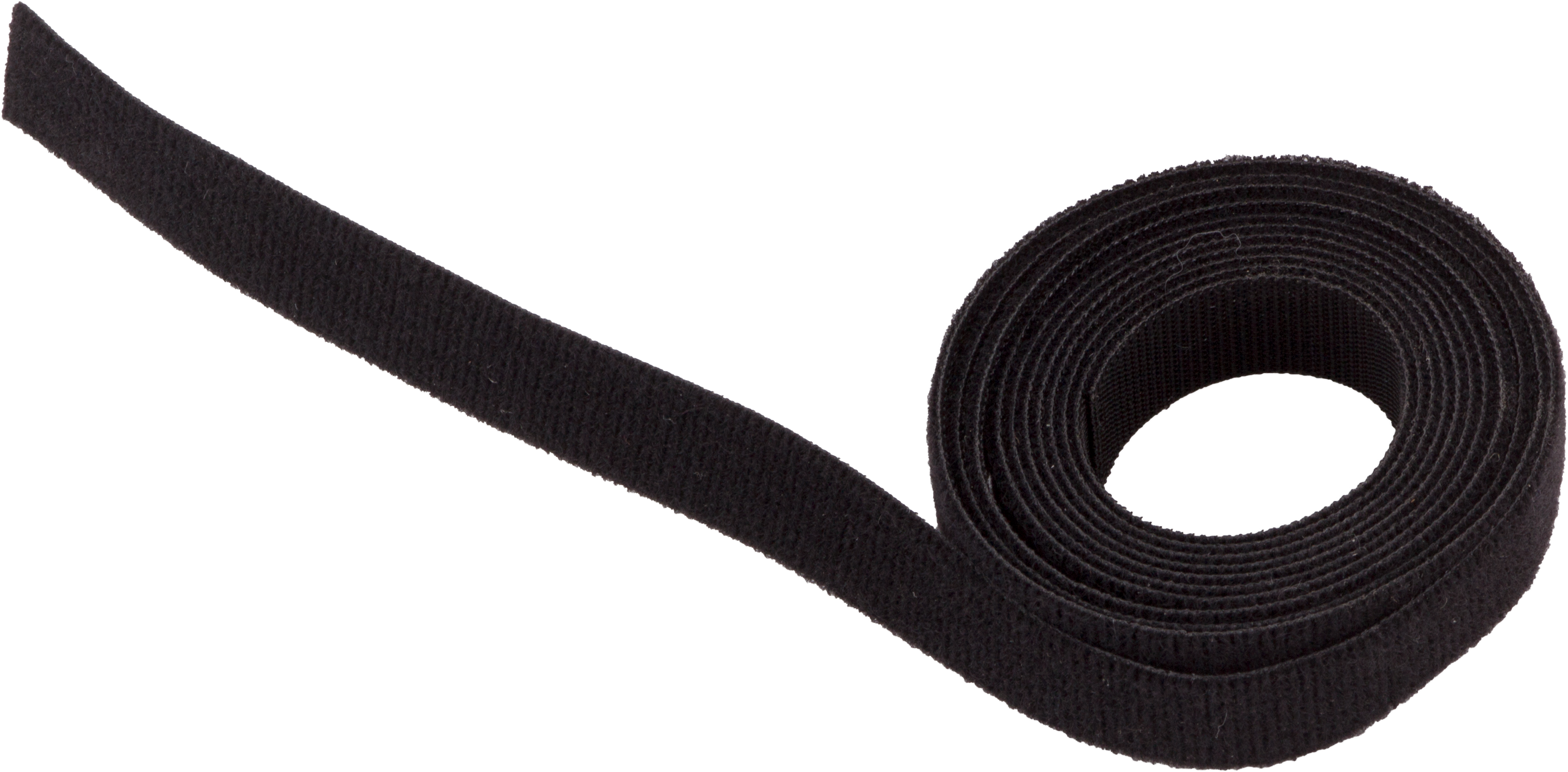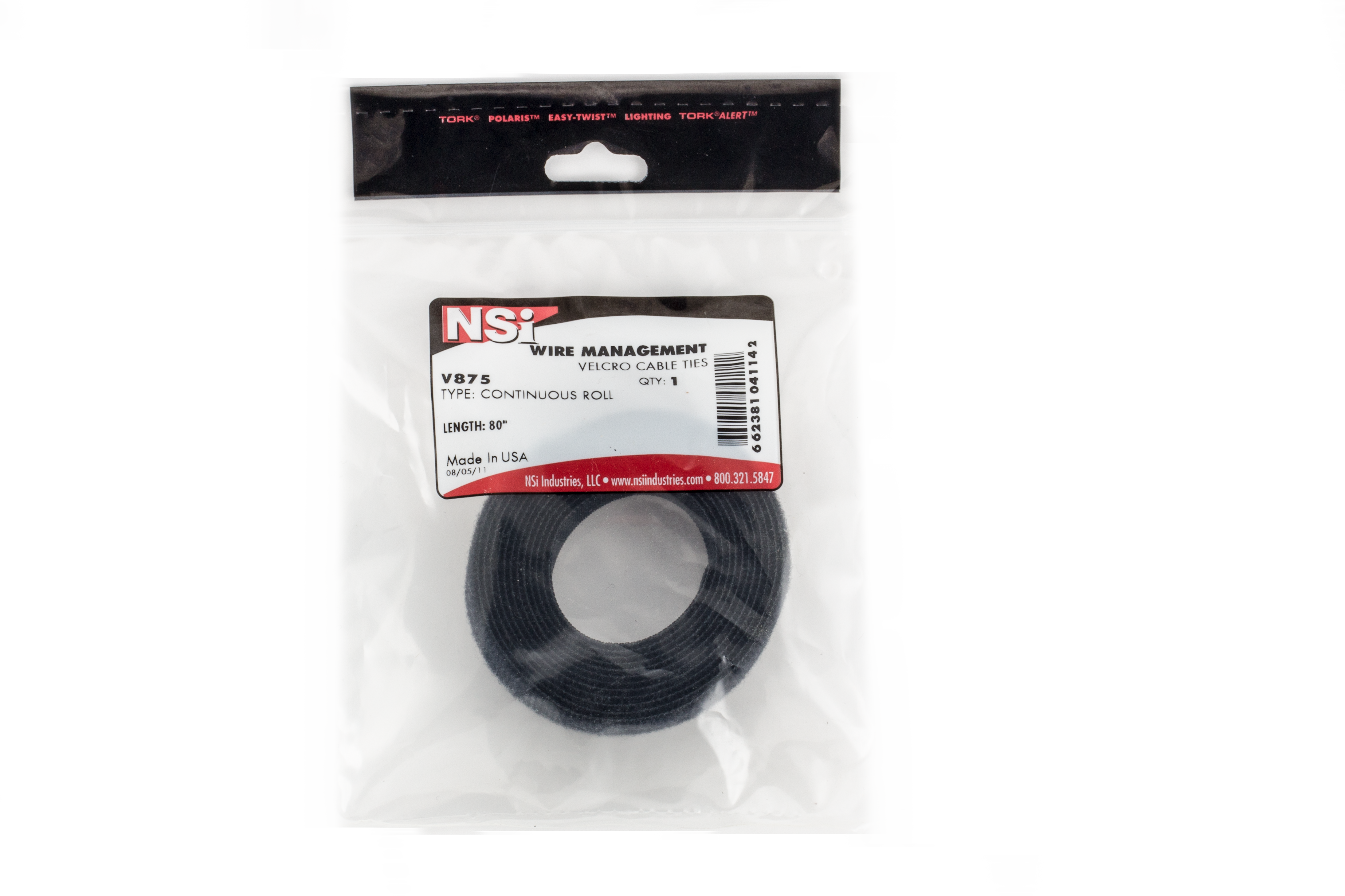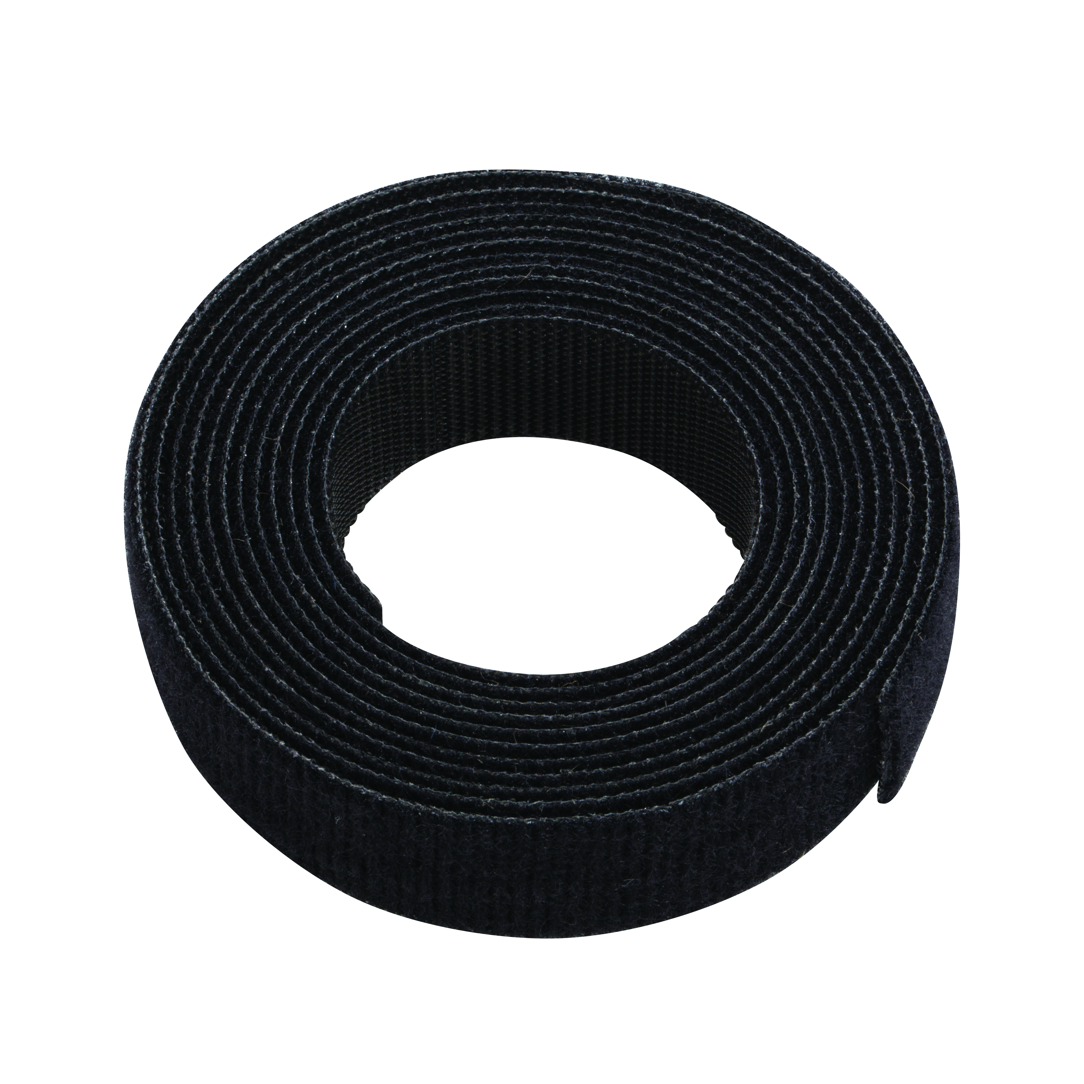 80-in Black hook and loop fastener Cable Tie - 1 Piece hook and loop fastener Cable Ties offer a unique back-to-back fastening system a self-gripping; double-sided strap that is easy to use and cost effective. They feature a molded high performance polyethylene hook fastener laminated on to a non-woven polyester loop. The low peel strength allows for easy entry or removal by the user yet the average shear strength is 3.0 psi; which increases substantially with each circular rotation. Will not ov