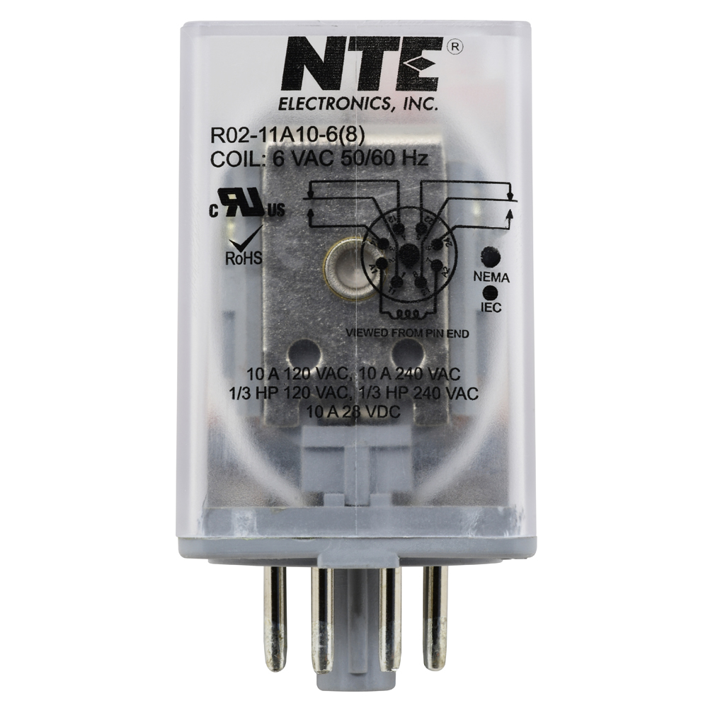 R02-11A10-6 NTE | R02 | Relays Factory Lead Time: TBD RoHs Compliant RELAY-10AMP DPDT 6VAC 8-PIN OCTAL $79.00 Quantity Min: 1 Mult: 1