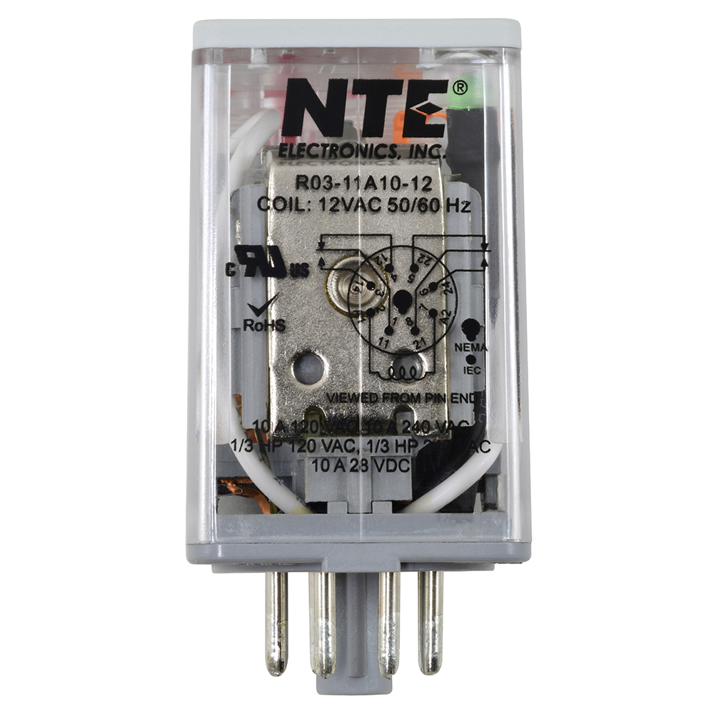 R03-11A10-12 NTE | R03 | Relays Factory Lead Time: TBD RoHs Compliant RELAY-10AMP DPDT 12VAC 8-PIN OCTAL FULL FEATURED PUSH BUTTON LOCK DOWN DOOR FLAG AND LED INDICATOR $101.90 Quantity Min: 1 Mult: 1