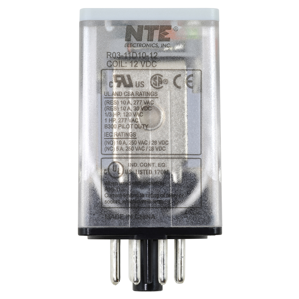 R03-11D10-12 NTE | R03 | Relays Factory Lead Time: TBD RoHs Compliant RELAY-10AMP-DPDT 12VDC 8-PIN OCTAL FULL FEATURED PUSH BUTTON LOCK DOWN DOOR FLAG AND LED INDICATOR $101.90 Quantity Min: 1 Mult: 1