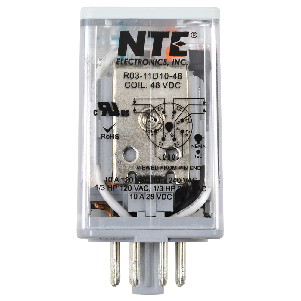 R03-11D10-48 NTE | R03 | Relays Factory Lead Time: TBD RoHs Compliant RELAY-10AMP-DPDT-48VDC 8-PIN OCTAL FULL FEATURED PUSH BUTTON LOCK DOWN DOOR FLAG AND LED INDICATOR $101.90 Quantity Min: 1 Mult: 1