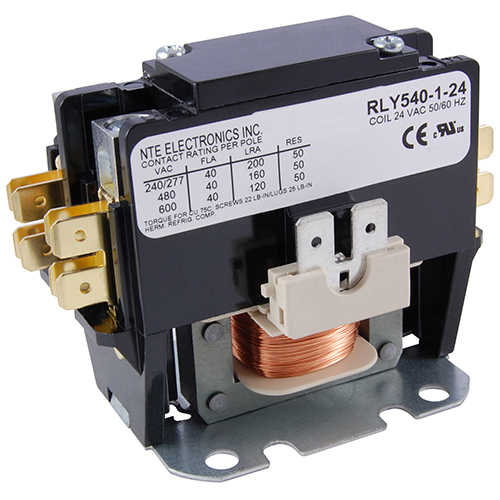 RLY540-1-120 NTE | RLY540 | Relays Factory Lead Time: TBD RoHs Compliant CONTACTOR 1 POLE 40FLA 120V SCREWS W/QUAD .250 INCH QUICK CONNECTS AND SHUNT $77.10 Quantity Min: 1 Mult: 1