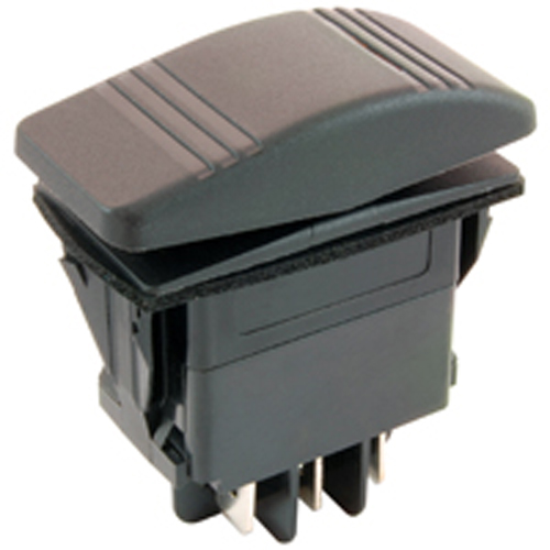 NTE SWITCH ROCKER ILLUMINATED SNAP-IN DPDT 20A 12VDC (ON)-OFF-(ON) W/AMBER LENS .25 QC TERM AUTO/MARINE PART-NUMBER 54-040