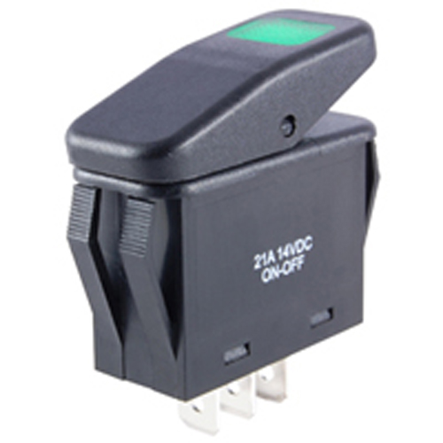 NTE ROCKER SWITCH WATERPROOF ILLUMINATED SPST 20A ON-NONE-OFF GREEN 12V LED LAMP .250 QC TERMINALS PART-NUMBER 54-220W