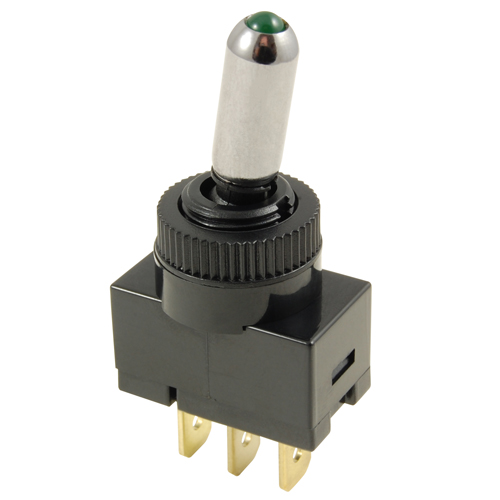 NTE SWITCH ILLUMINATED TIP TOGGLE SPST 20A 12VDC ON-NONE-OFF METAL LEVER GREEN TIP .250 INCH QC TERMINAL PART-NUMBER 54-706-G