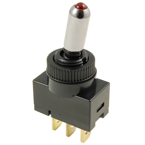 NTE SWITCH ILLUMINATED TIP TOGGLE SPST 20A 12VDC ON-NONE-OFF METAL LEVER RED TIP .250 INCH QC TERMINALS PART-NUMBER 54-706-R
