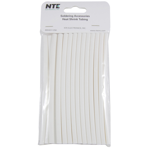Heat Shrink 3/16 In Dia Thin Wall White 6 In Length 25 Pieces Per Package 2:1 Shrink Ratio