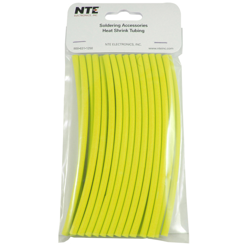 Heat Shrink 3/16 In Dia Thin Wall Yellow 6 In Length 25 Pieces Per Package 2:1 Shrink Ratio