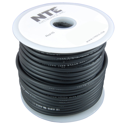 TEST LEAD WIRE 5000V 18 GAUGE BLACK STRANDED TINNED COPPER EPDM RUBBER INSULATION 50 FEET