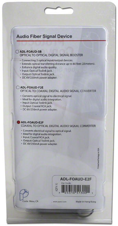 ADL-FOAUD-E2F Pan Pacific | Fiber Adapters Factory Lead Time: TBD RoHs Compliant COAX (RCA) IN FIBER OUT SIGNAL CONVERTER Pan Pacific Part Number: ADL-FOAUD-E2F $22.60 Quantity Min: 1 Mult: 1