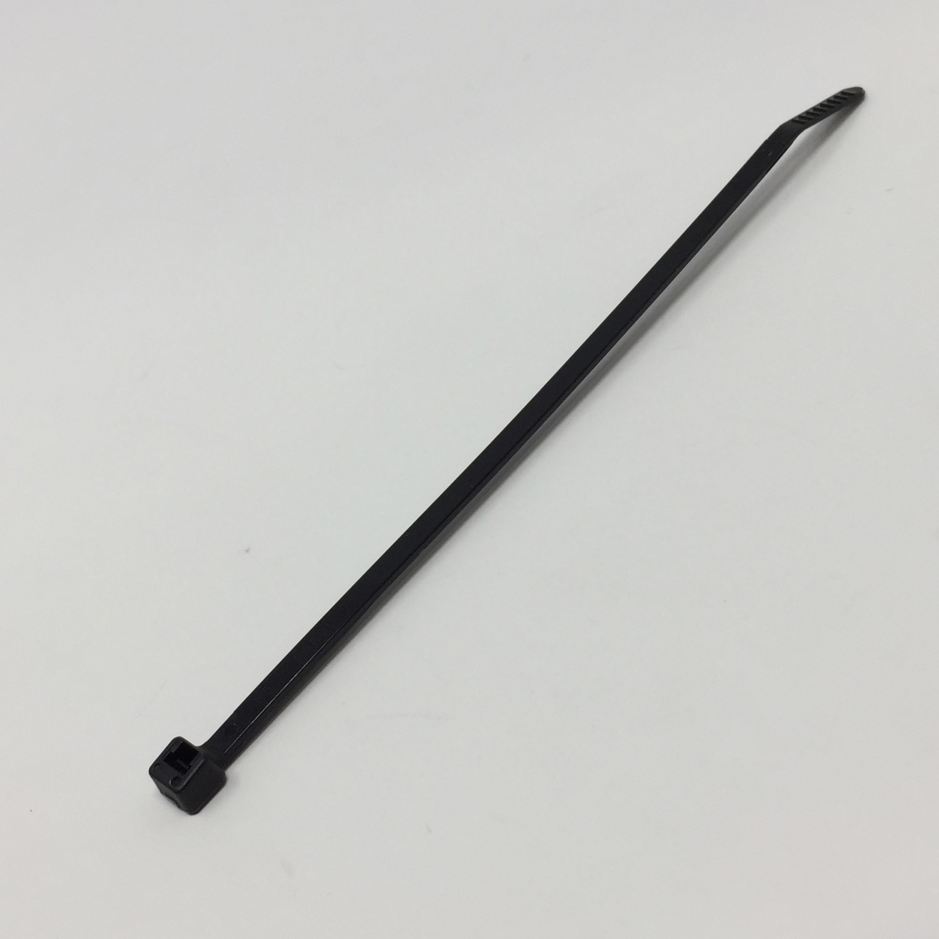 Factory Standard Pack = 100: Cable Tie, 5.6 Inches (142 mm) Length, Intermediate, 40 Pounds Minimum Loop Tensile Strength, Heat Stabilized Nylon 6.6, Black. Material Flammability Rating of V-2. Heat Stabilized material for high temperature applications up to 239 degrees Fahrenheit (115 degrees Celsius). Indoor use. One-piece construction for consistent performance and reliability. Low thread force. Curved tip design is easy to pick up from flat surfaces and allows faster initial threading to spe