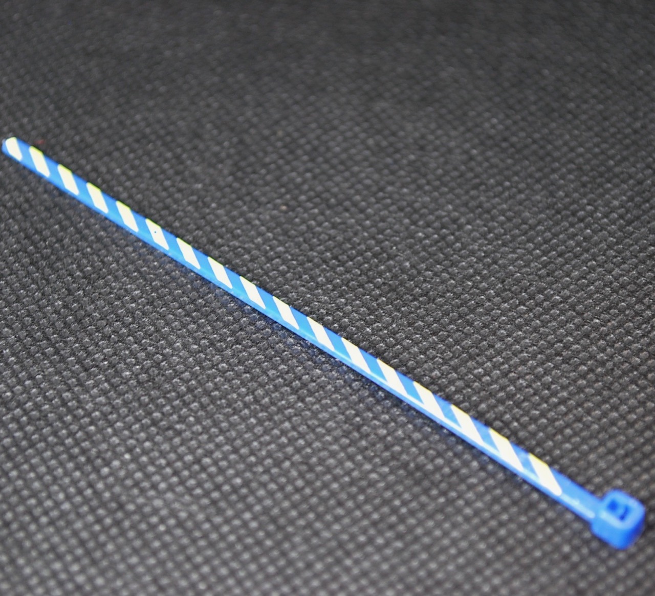 Factory Standard Pack = 50: Cable Tie, 4 Inches (102 mm) Length, Miniature, Nylon, Blue/Yellow Stripe. Nylon material for indoor use. Striped Pan-Ty Cable Ties available in 25 color combinations to match the universally accepted Even-Count Color Code. Each 50-piece package fits in the Pan-Pouch Kit or pocket pouch (sold separately).: Prices available while supplies last.