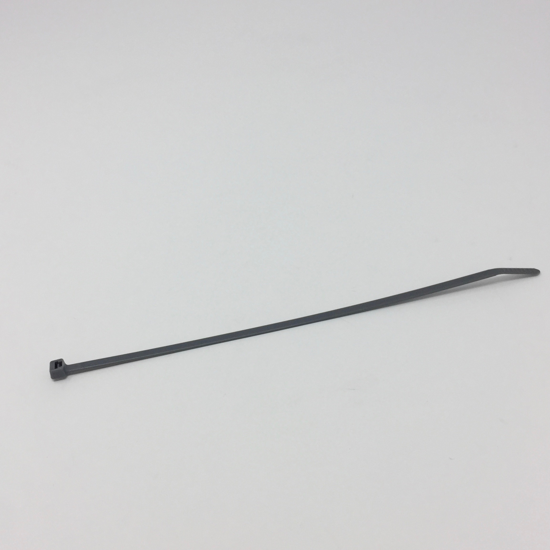 Factory Standard Pack = 1000: Cable Tie, 8.0 Inches (203 mm) Length, Intermediate, 40 Pounds Minimum Loop Tensile Strength, Nylon 6.6, Gray. Material Flammability Rating of V-2. For indoor use. One-piece construction for consistent performance and reliability. Low thread force. Curved tip is easy to pick up from flat surfaces and allows faster initial threading.: Prices available while supplies last.
