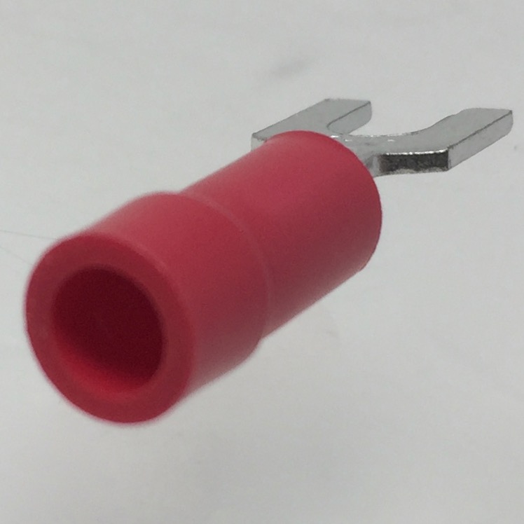 Factory Standard Pack = 1000: Panduit PV18-6F-MY Fork Terminal, vinyl insulated, funnel entry, 22 – 16 AWG, #6 stud size, bulk package. Fork Terminal, vinyl insulated, 22 - 16: Prices available while supplies last.