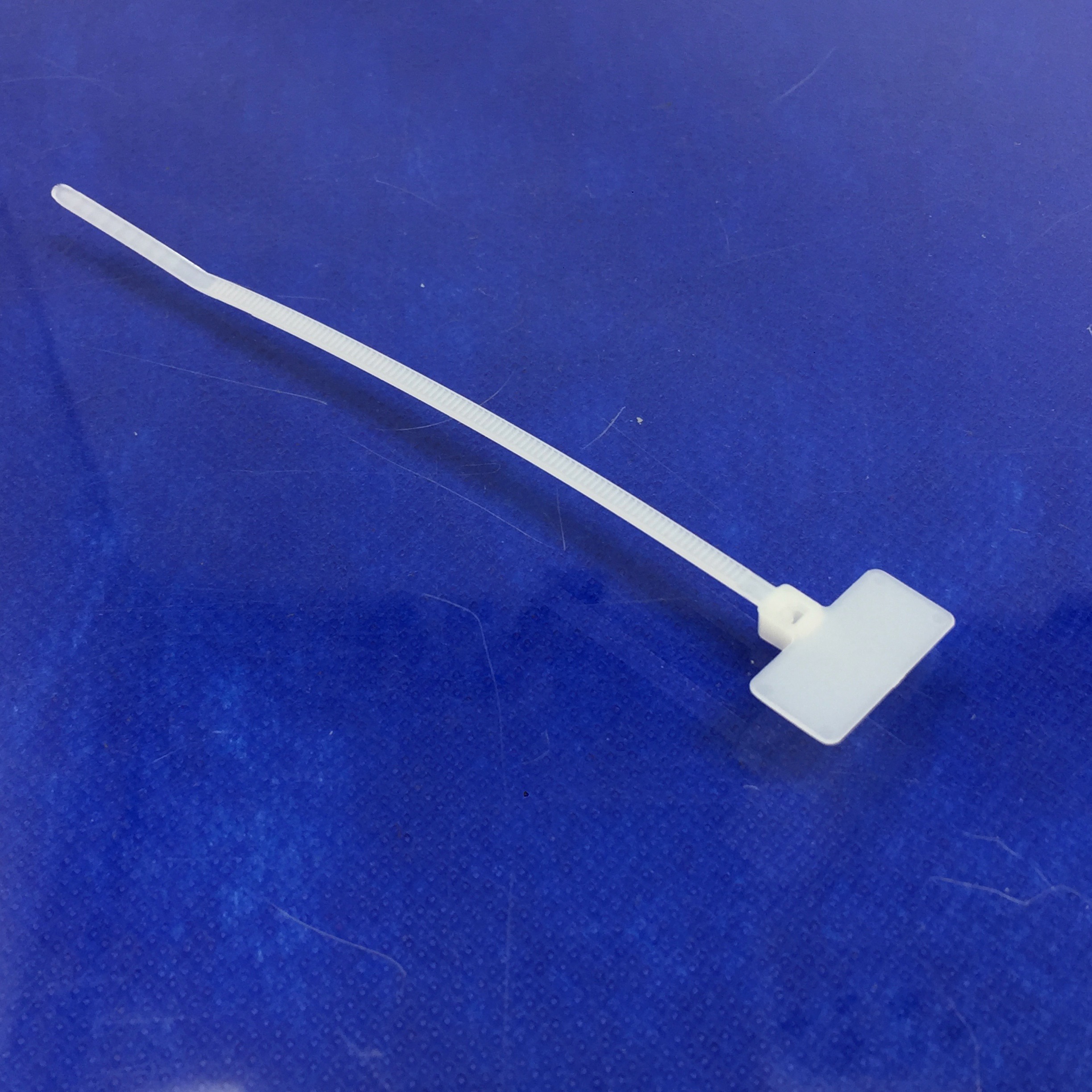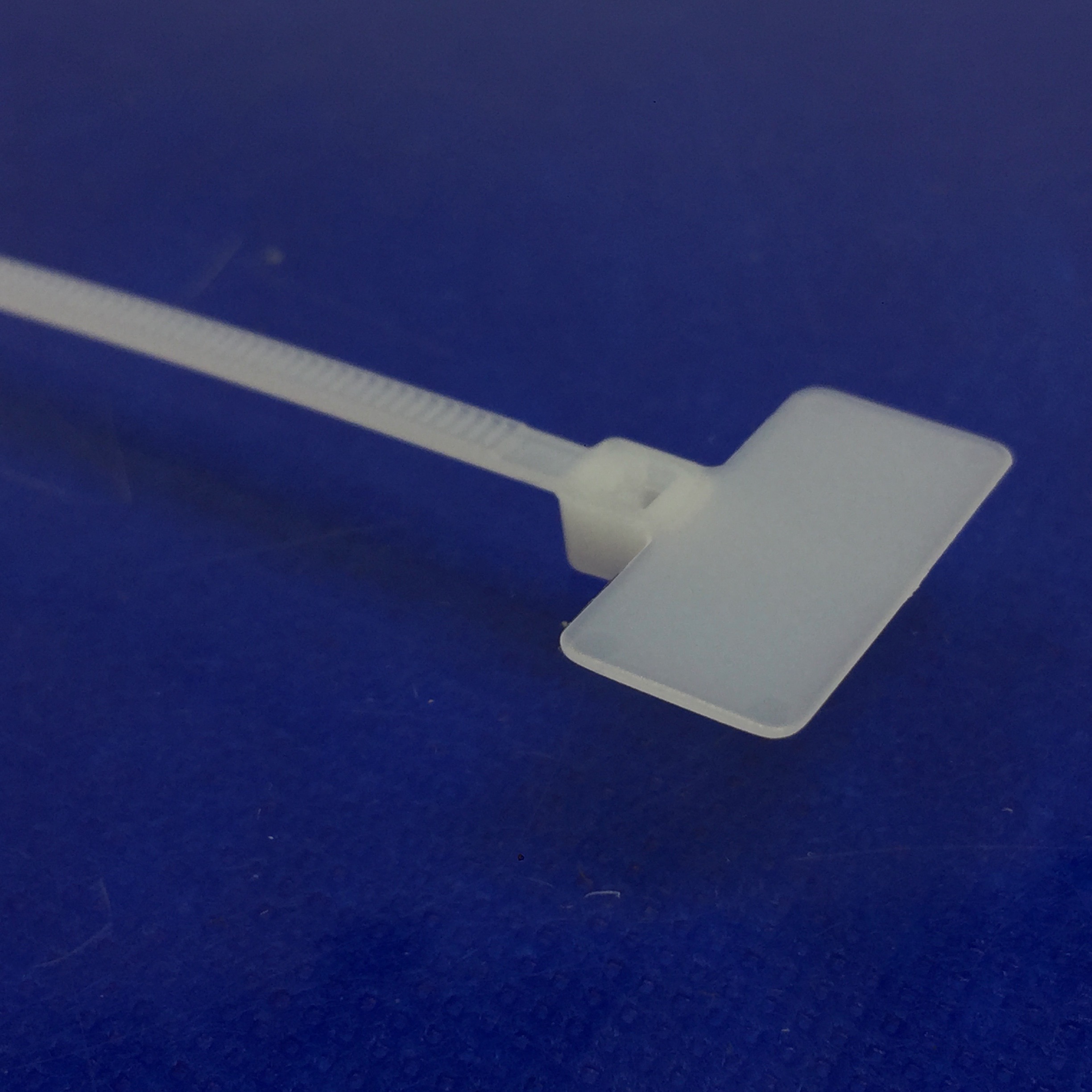 Factory Standard Pack = 100: Marker Tie, Flag Style, 4.3 Inches (109 mm) Length, Miniature, Nylon, Natural. For indoor use. Used to fasten and identify bundles at the same time. One-piece construction for consistent performance and reliability. Can be marked with Panduit marker pens or custom imprinted with text, symbols or trademarks using Panduit Custom Hot Stamping Service. Curved tip is easy to pick up from flat surfaces and allows faster initial threading.: Prices available while supplies l