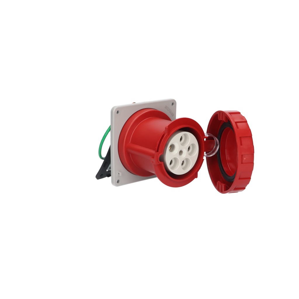 Watertight & splashproof 60A Pin and Sleeve Receptacle for 120/208 Volts. This item has a clock position of 9H and color of Blue with 4P 5W poles and wire configuration.