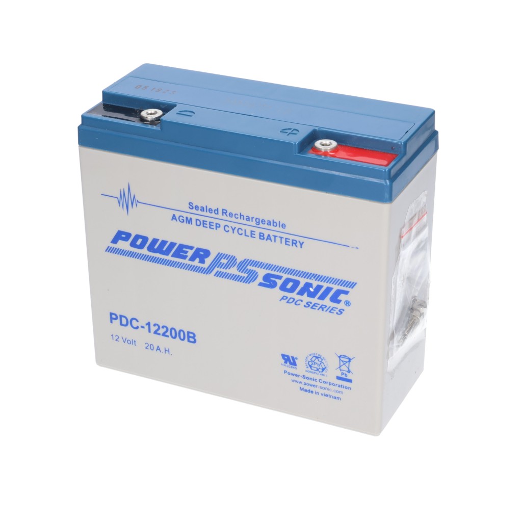 Power Sonic OEM 12 Volt 21 Ah Deep Cycle Sealed Lead Acid Absorbent Glass Mat (AGM) rechargeable battery. Ideal for medical, mobility, golf and renewable energy applications. with (7.14 x 3.03 x 6.56) Overall Dimensions. and M5 Terminals. Part Number: 1202008406 Model #: PDC-12200 M5