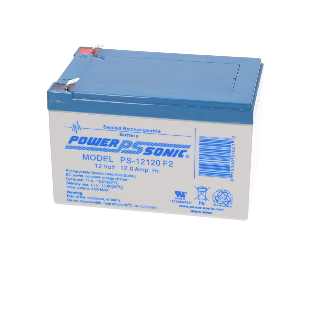 Power Sonic OEM 12 Volt 12 Ah General Purpose Sealed Lead Acid Absorbent Glass Mat (AGM) rechargeable VRLA battery. with (5.94 x 3.86 x 3.86) Overall Dimensions. and F2 Terminals. Part Number: 1201203402 Model #: PS-12120 F2