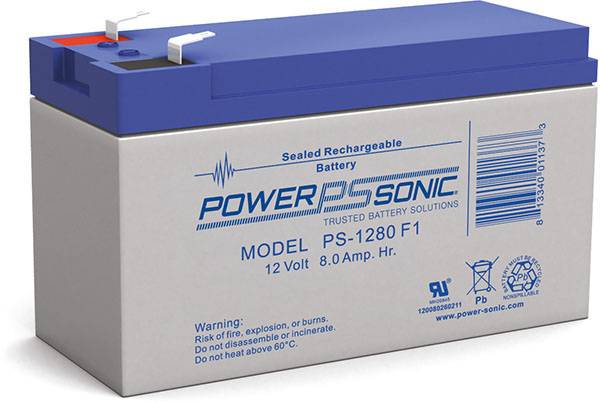 Power Sonic OEM 12 Volt 8 Ah General Purpose Sealed Lead Acid Absorbent Glass Mat (AGM) rechargeable VRLA battery. with (5.94 x 2.56 x 3.90) Overall Dimensions. and F2 Terminals. Part Number: 1200803402 Model #: PS-1280 F2