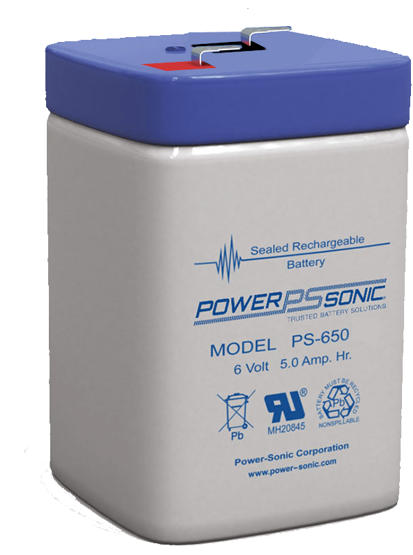 Power Sonic OEM 6 Volt 5 Ah General Purpose Sealed Lead Acid Absorbent Glass Mat (AGM) rechargeable VRLA battery. with (2.64 x 2.64 x 4.64) Overall Dimensions. and F1 Terminals. Part Number: 0600502602 Model #: PS-650LF F1