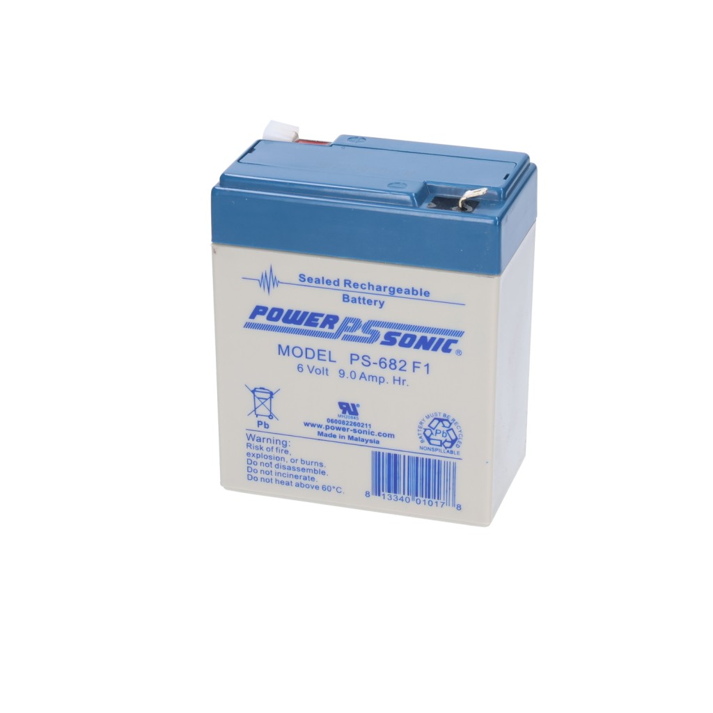 Power Sonic OEM 6 Volt 8.5 Ah General Purpose Sealed Lead Acid Absorbent Glass Mat (AGM) rechargeable VRLA battery. with (3.86 x 2.20 x 4.72) Overall Dimensions. and F1 Terminals. Part Number: 0600822602 Model #: PS-682 F1