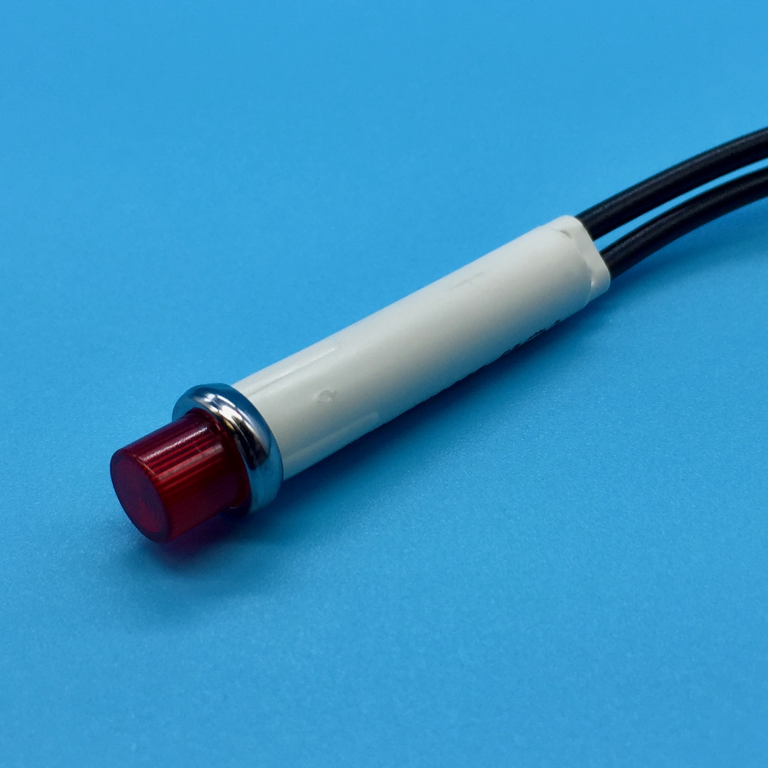 Solico Round Front Mount Red 250V NEON Indicator. Use Panel Cutout - 0.312 Dia for panel thinkness .030 Min and wire leads termination.