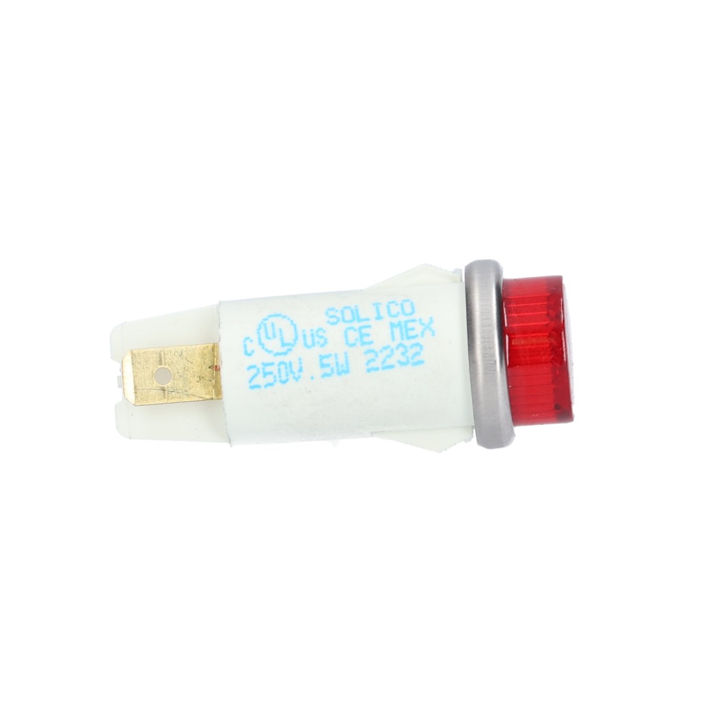 Solico Round Snap Fit Front Mount Red 250V NEON Indicator. Use Panel Cutout - 0.500 for panel thinkness .030 - .093 and TABS termination.