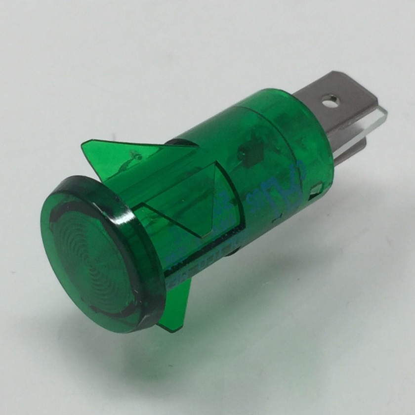 Solico Round Snap Fit Front Mount Green 14V LAMP Indicator. Use Panel Cutout - 0.500 for panel thinkness .040 - .093 and TABS termination.