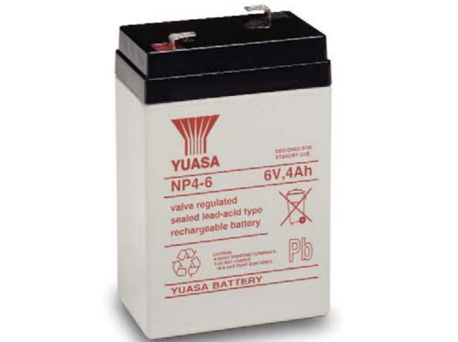 Yuasa NP Series 6 Volt - 4.0(Ah) Sealed Rechargeable Lead- Acid Battery with 0.187 Faston Tab Terminals. Overall Size 2.76 x 1.85 x 4.15 (LxWxH Inches) & 1.87 Lbs Each.