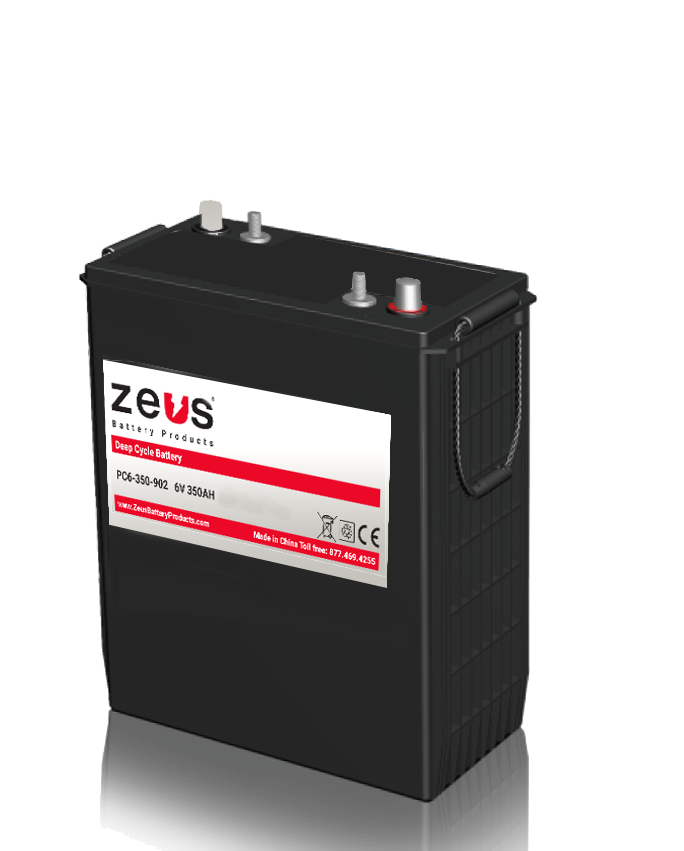 Zeus PC6-350 Rechargeable Deep Cycle Battery. Overall dimensions (11.61 x 7.09 x 13.62) Inches @ 105.800 Lbs.