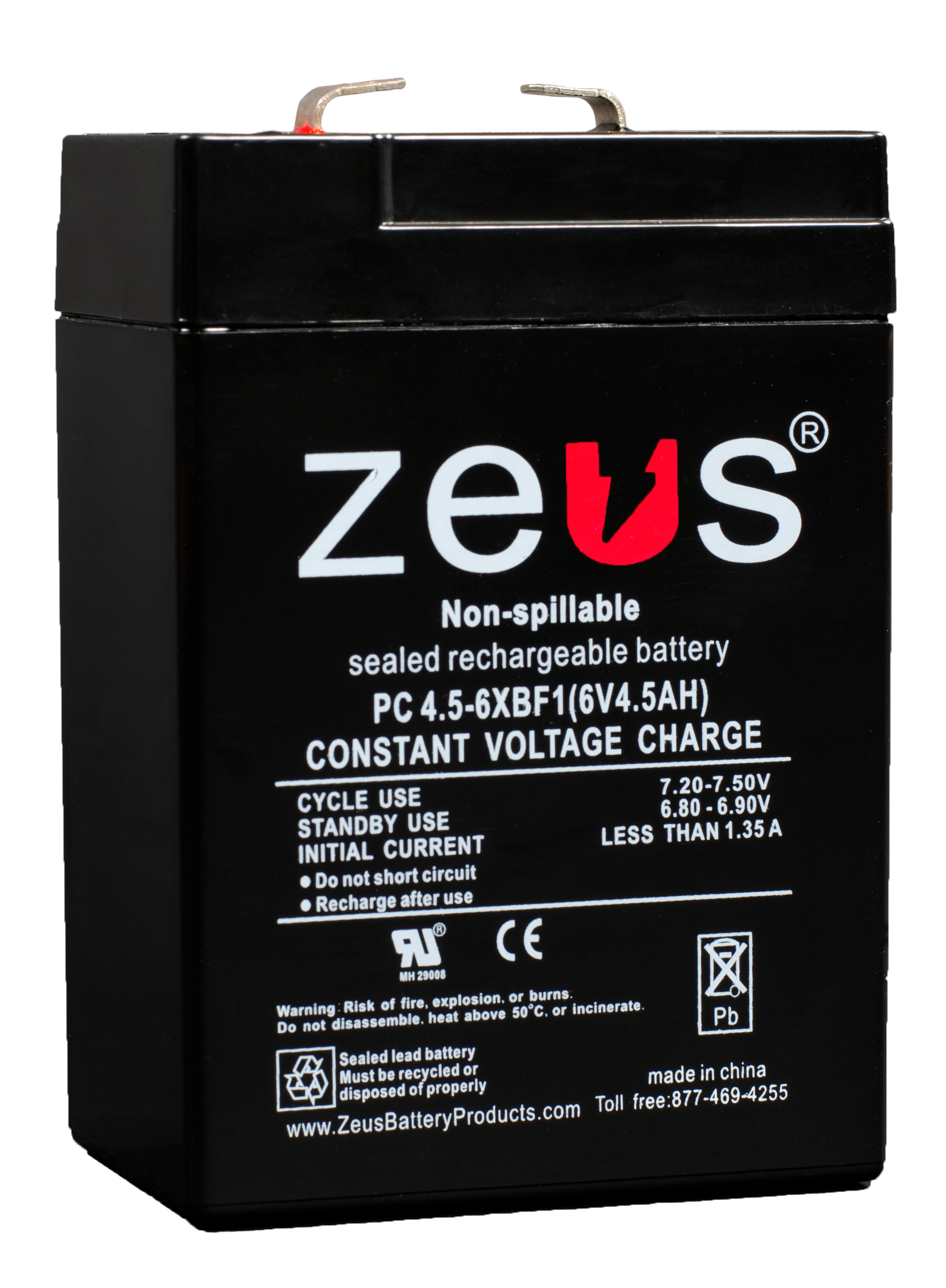 Zeus PC4.5-6XB 6V 4.5AH BLACK CASE Rechargable Sealed Lead Acid Battery. Overall dimensions (2.76 x 1.85 x 3.90) Inches @ 1.6 Lbs.
