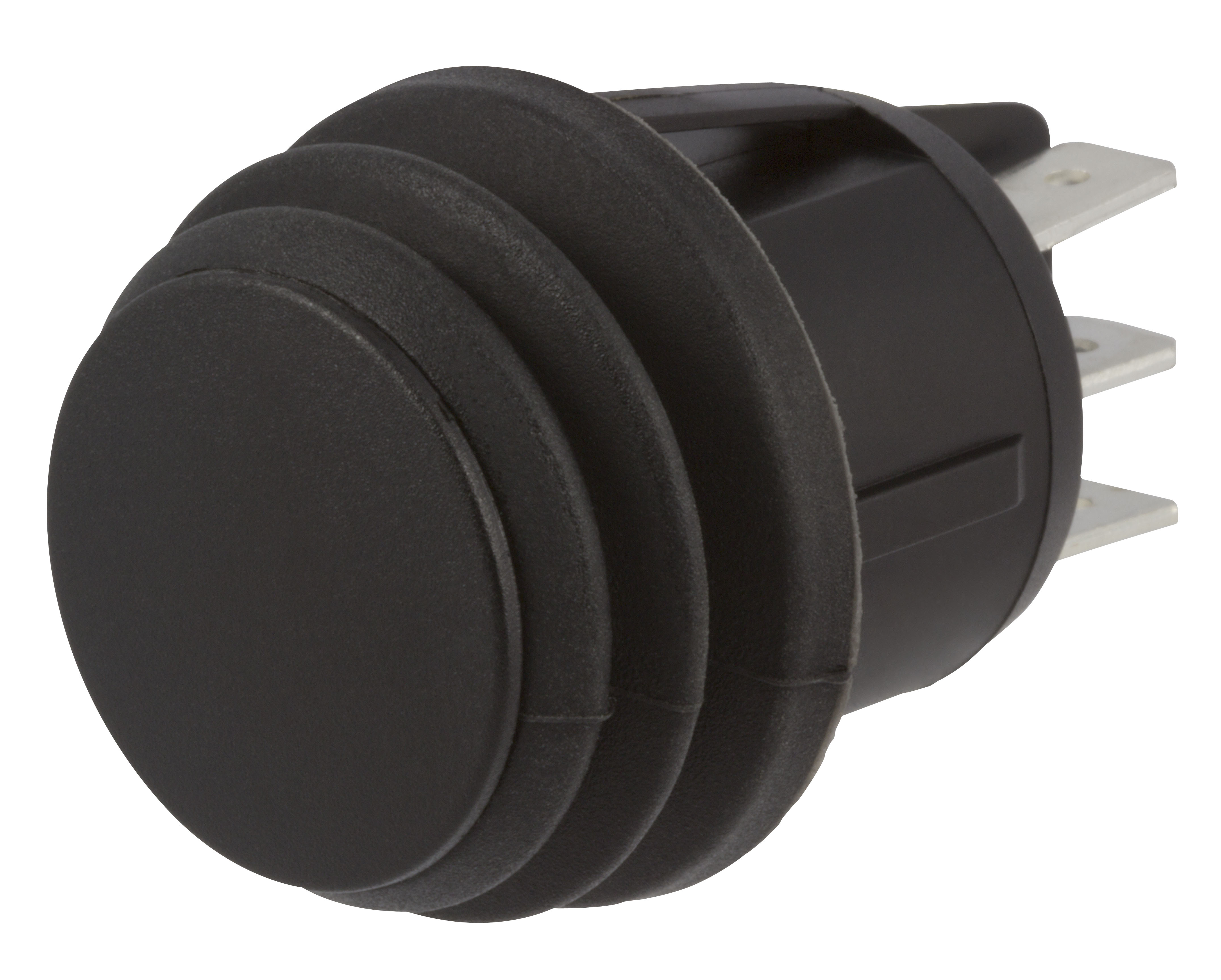 16A 125VAC - 10A 250VAC DPDT - On-Off-On IP56 Double-Pole Round Rocker Switch with Q.C. 0.187" (4.8mm) Terminals